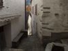 TV, UPHOLSTERY, SALON TABLE, WOOD BURNING STOVESTAIRCASE LEADING TO THE KITCHEN AND DINING ROOM